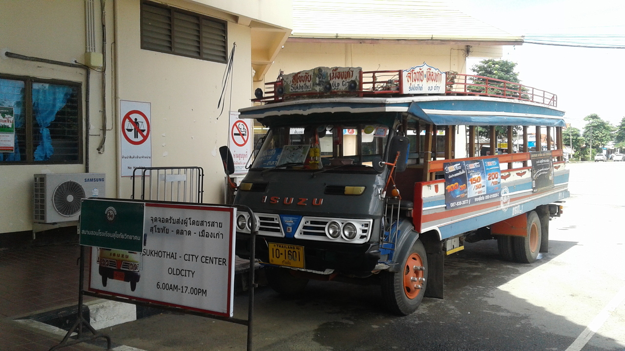 スコータイを走っているメータータクシーは、そのほとんどがピッサヌロークからの貸し切りで、メーターのないタクシーは空港タクシーかハイヤーの場合が多いです。スコータイの市街地は歩いて回れる規模ですし、スコータイ遺跡へは、バスターミナル発着でヨム川近くのバス停を経由するソンテオ(30バーツ)に乗った方が安いです。