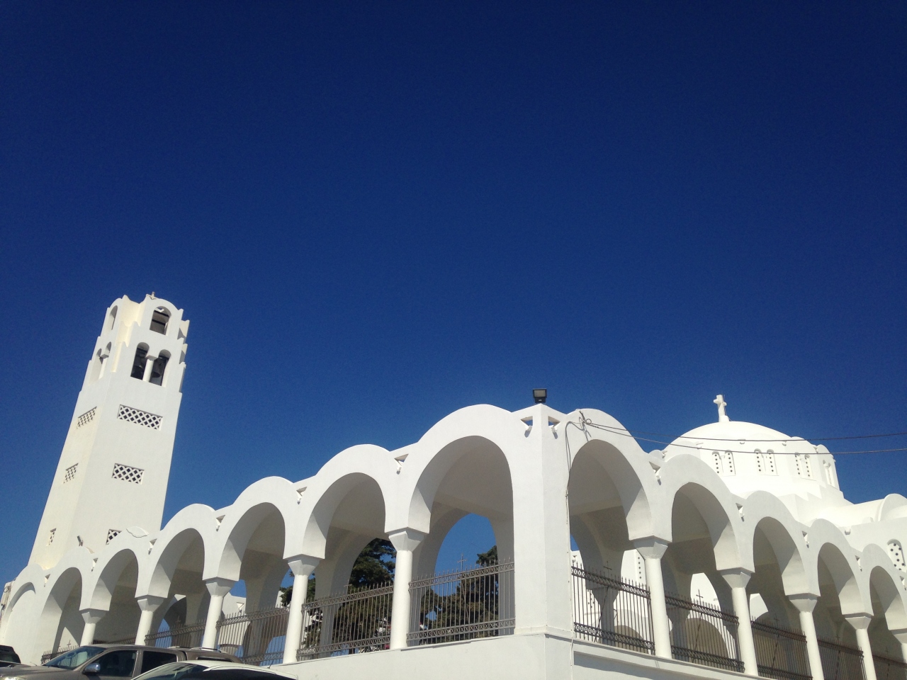 フィラのバスステーションから観光案内所がある通りを上って行くと見える大きな教会です。短パンや袖なしの服だと入れません。中のカメラ撮影もNGです。中はギリシャの教会らしく色鮮やかな壁画や金色の装飾品があります。