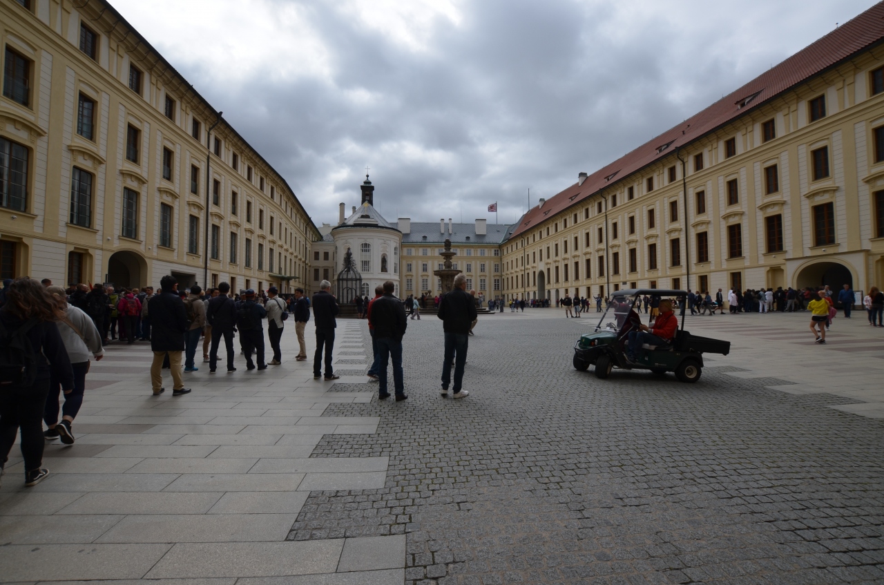 第2の中庭と呼ばれる所にある噴水です。北側の門から入るとそこがすぐに第2の中庭で、真ん中にこの噴水が見えます。とても立派な彫刻が施された噴水ですが、水は出ていませんでした。噴水の向こうにある聖十字架礼拝堂とともに、四角い広場に変化をつけています。