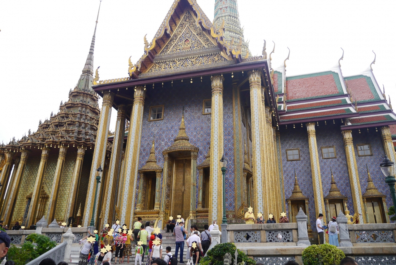 バンコクのワットプラケオ内にあり、金ぴかの仏舎利の隣りにある柱の囲まれた、尖塔が目立つ建物で法典が収められています。