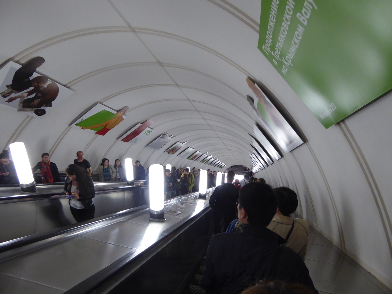 モスクワ市街には充実したメトロ網が整備されています。相当な深度に地下鉄が掘られていますので、地上からプラットフォームまでは長くて高速なエスカレータで下ることになります。車両のドアはバタンと急激に閉まりますし、相当な速度で走り、騒音も結構なものです。日本のように駅員が乗り降りを注意深く見守ってくれている訳ではありませんので、利用では迅速性と注意も必要だろうと思います。