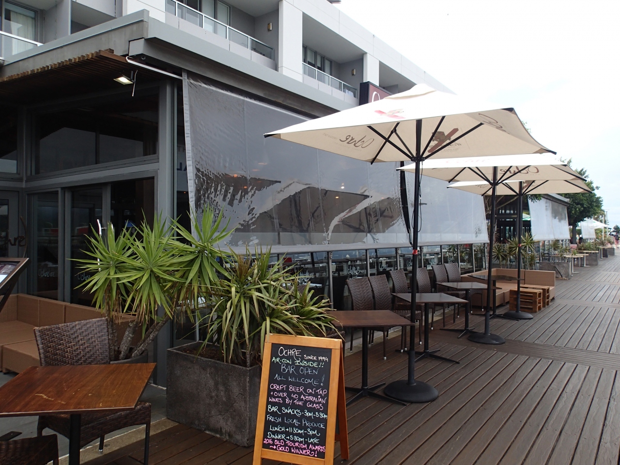 リーフフリートターミナル前のボードウォーク沿いにあるモダンオーストラリア料理レストランです。海の目の前で、ガラス張りの店内は開放感があって雰囲気はいいです。が、料理は、創作色が濃いのか?不思議なものが多くあまり口に合わなかったです(^_^;)