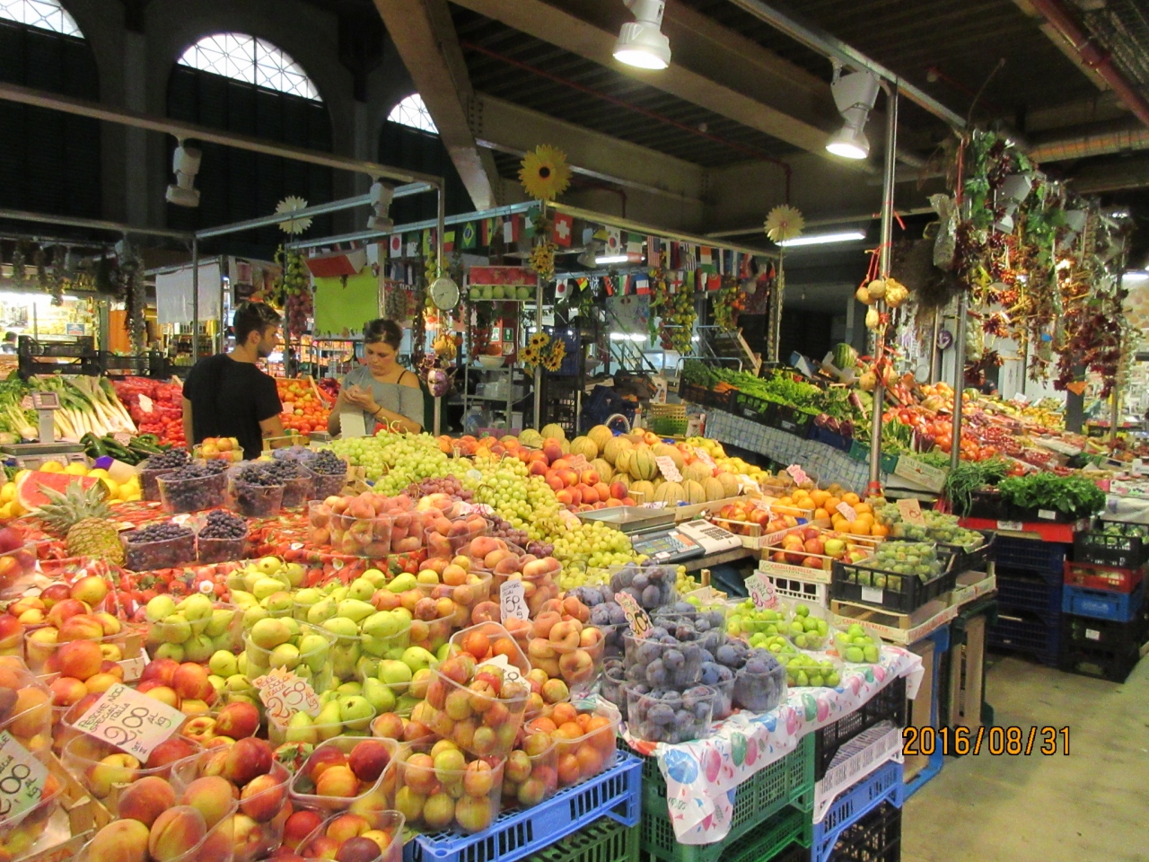 朝早く駅に着いて、美術館や、観光スポットがオープンする前に行きました。プロの料理人が通うマーケットもあれば、日本人の店員さんがいる、お土産に、小分けの香辛料やリゾットの元、オリーブオイル、生ハムを売っている店もあり、観光客も十分たのしめます。