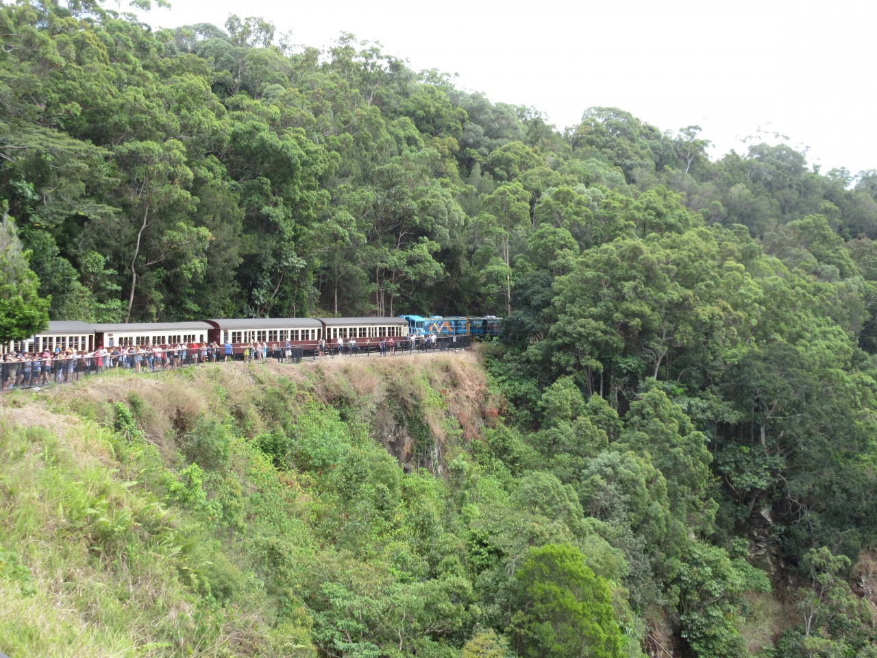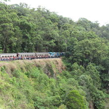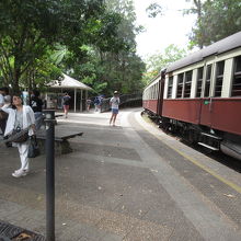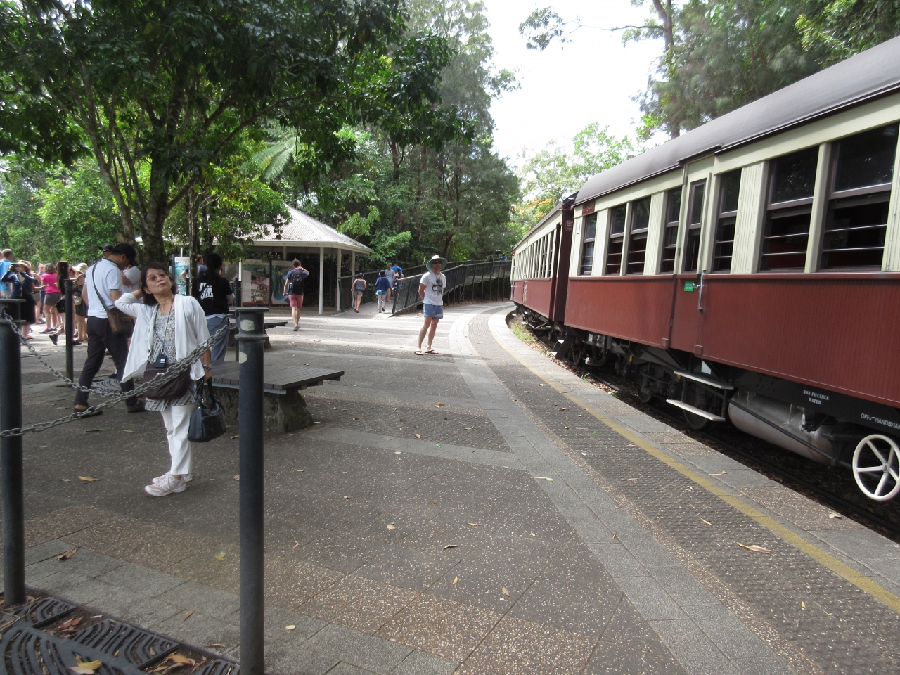 列車の中は木造で建設当時の趣を残している。熱帯雨林の中を2時間かけてゆっくり走る。途中のバロン滝では10分の停車時間があり、写真撮影がたっぷりできる。最終車両は10号車。10号車に乗ると前の列車を撮影できる。