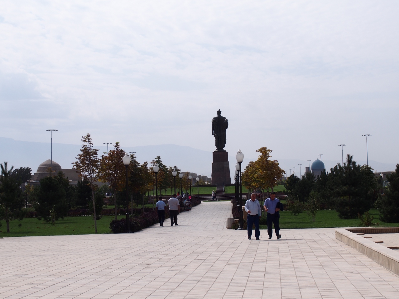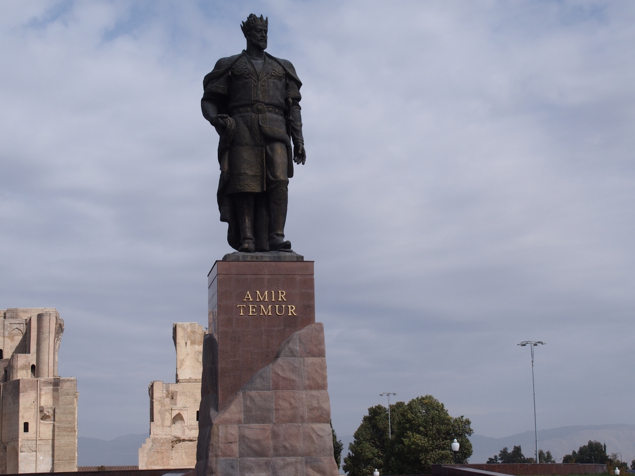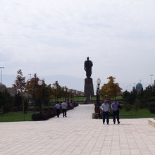 アク・サライ宮殿跡の入口の城門を通り過ぎて100mほどの場所にチムールの勇猛な銅像があります。シャフリサブスはチムールの生誕の地でもあるので、ここに彼の銅像があるのも納得です。銅像がある場所は、民家がいっぱいあった場所のようですが、家の立ち退きを行い公園を造った場所のようです。公園はよく整備された場所で、周りにはチムールの像しかないのでいい目印になっています。