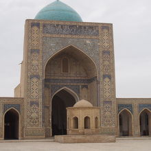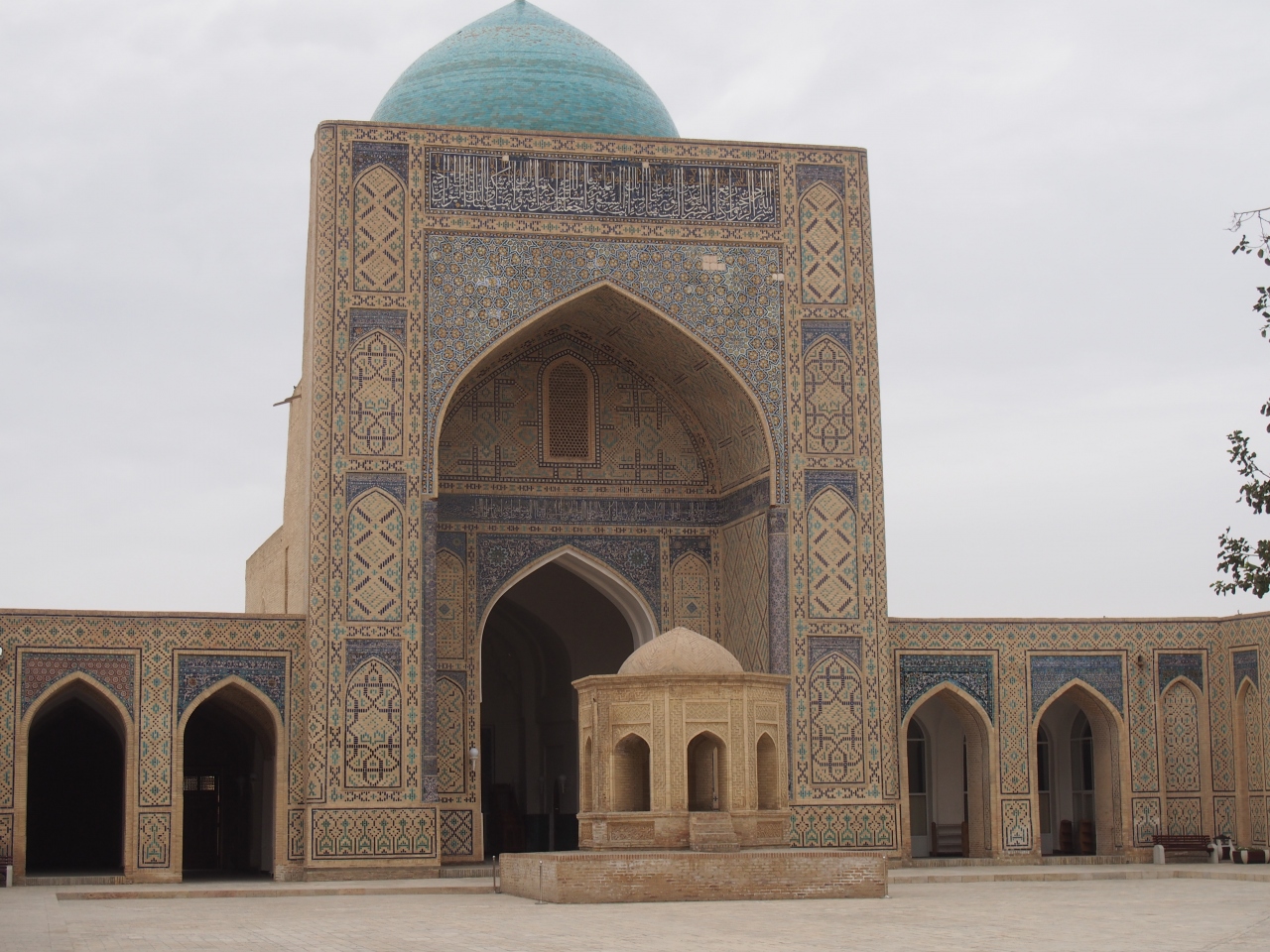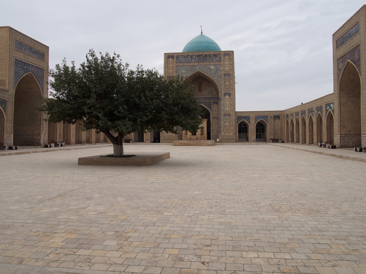 カラーン・モスクはカラーン・ミナレットのすぐ足元にあるモスクです。16世紀初めに建てられたモスクで巨大な広さのモスクです。中庭には1万人が礼拝できる広さがあるそうです。夕方に訪れた時は、観光客、礼拝の人もほとんどいなかったため、その広さを一層感じました。回廊が広場をずっと囲んでいるのも印象的でした。