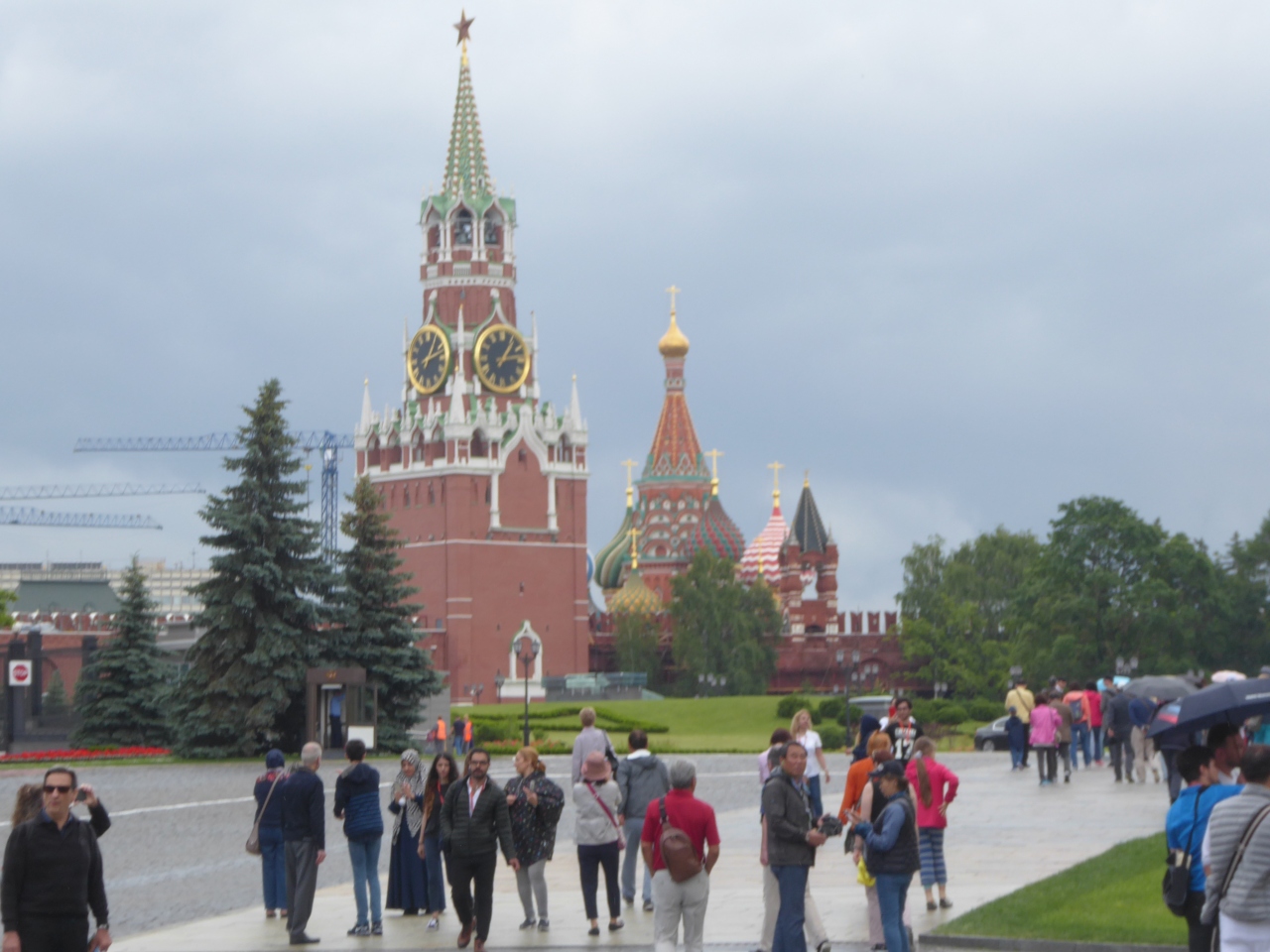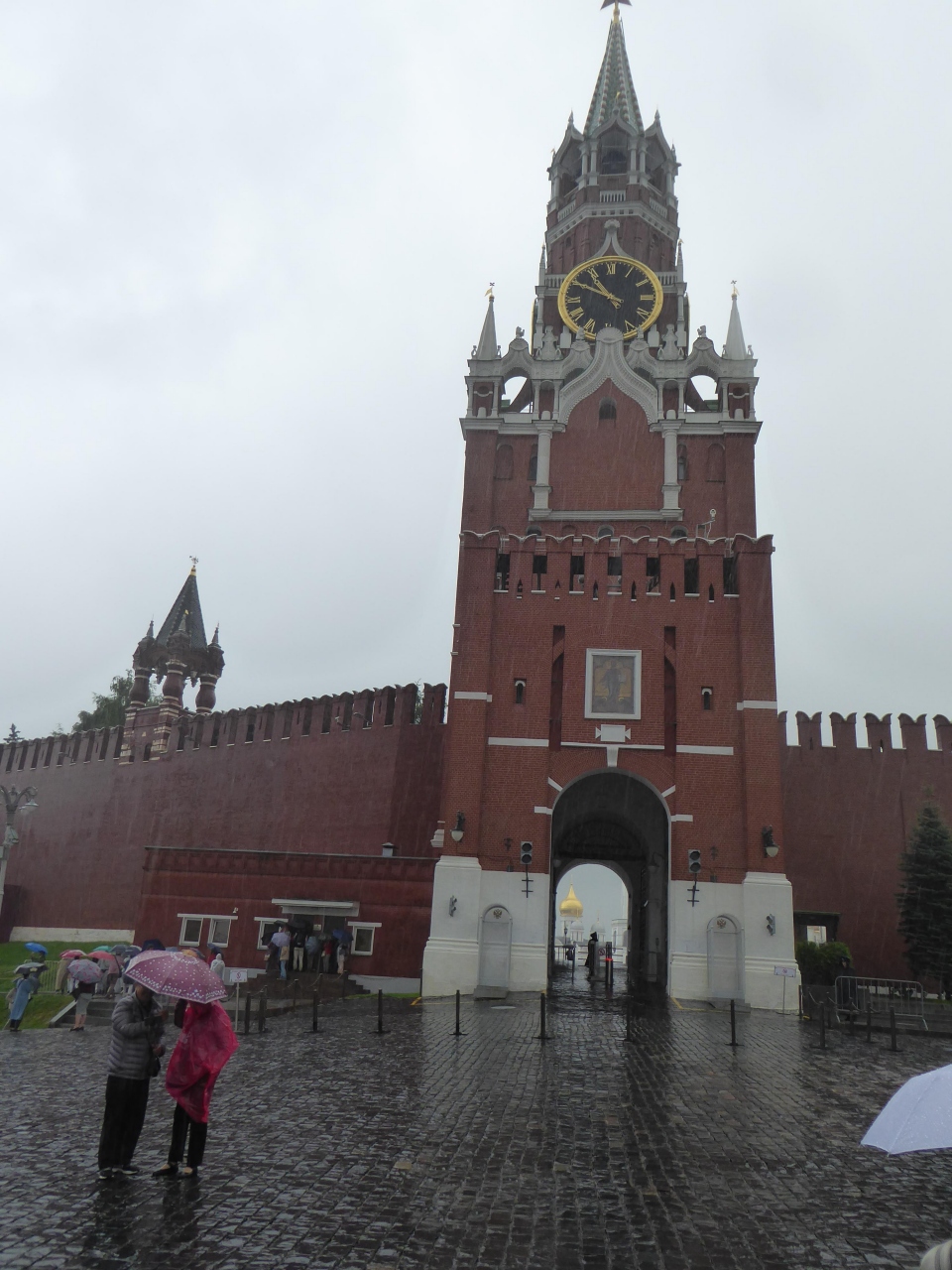 雨の日に赤の広場側から、晴れた日にクレムリンの内側から見学しました。どちら側から見ても美しくて大きい、ロシア的な建造物です。クレムリンの赤い壁には20個の塔がありますが、最も印象に残る立派な塔だと思います。