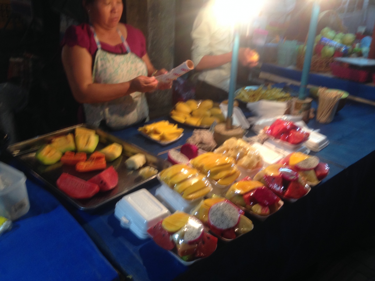 通りの西端にあるサンドイッチ村は、立地や見た目と違って、良心的価格。各店舗味が異なる。サンドイッチ村の向かいの夜の屋台街は、入り口付近のフルーツやお菓子を除いてお勧めしない。奥の方で食事をして正露丸のお世話になった。