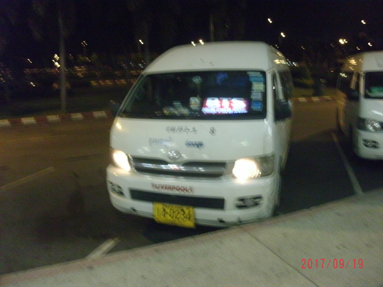 空港ターミナルで降車した(乗車はコンコースを挟んで反対側)なら30m程前方にミニバンが止まっています、時折乗車側に待機する事が有りますが見つける条件は1.フロントガラスにB.T.Sの行灯2.552又は552Aのルート表示(中にはOn.Nut表示車もある)3.既にエンジンがかかっていてエアコンが効いている。