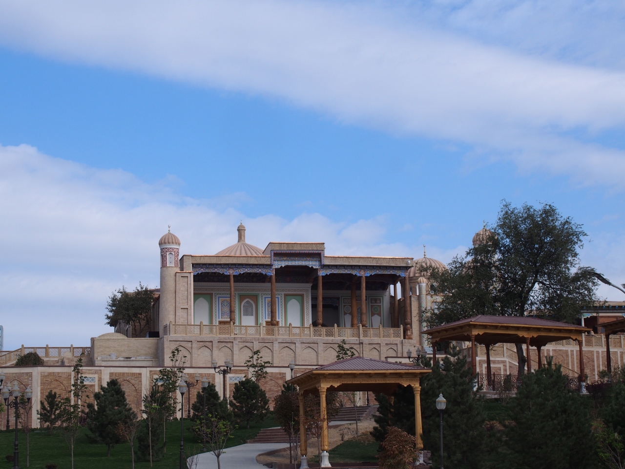 シャーヒズンダ廟群からショブバザールへと向かう途中にあります。小高い丘にあるので、見上げるようにその全体像がよく見えます。最初はゾロアスター教寺院でしたが、8世紀にモスクに建て直され、19世紀に現在の姿になったものです。モスクの正面の木造の彩色されたテラスは美しいです。