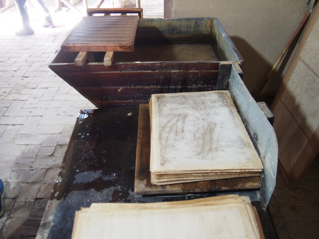8世紀にイスラム勢力と唐との間で戦争になり、その戦争で捕虜となった唐の人の中に紙職人がいて、それがイスラムへと広まり、サマルカンドペーパーのオリジナルになったそうです。紙の製法自体は日本でも見たことがあり、別段興味深いものではありませんが、こちらの紙の原料は桑の木を利用しています。敷地内にはサマルカンドペーパーの売店もあります。
