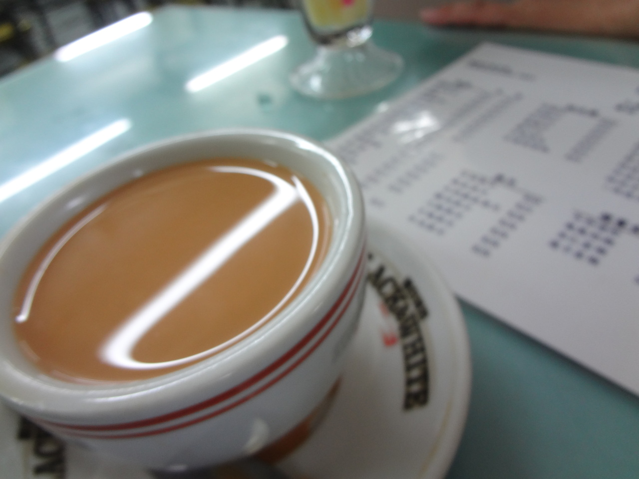 九龍のフェリー乗り場近くのバス停からバスにのって行きました。2階の席の雰囲気がよいと聞いていたのですが階段上り口にヒモがひいてあってどうやら掃除中の様子。年配のお姉さま店主さんに上に行ってもいいですか?と身振り手振りでお願いしたらあっさりOKしてくれました。昔懐かしい雰囲気の中でいただく濃厚ミルクティーはとっても美味しかったです!