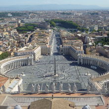 途中でクーポラの内側を見ることの出来る場所があります。ここから金網越しに真下にバルダッキーノが見えます。美術館、サンピエトロ寺院と室内を見学してきたので開放感があり清々しい気持ちになりました。
