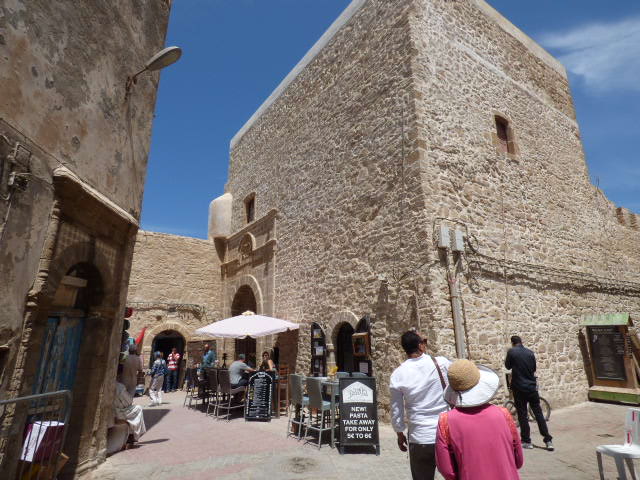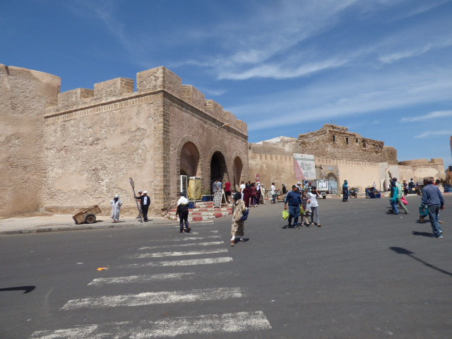エッサウィラでは旧市街に入る前に、ひときわ重厚な城壁が出迎えてくれます。規模も大きく、他のモロッコの都市では見たことがないほどの存在感です。壁の外には南ヨーロッパのようなビーチと市街があって、その対比もこの街らしいと思います。