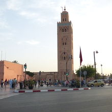 フナ広場から表通りに出ると、この塔が目に入ります。まさにマラケシュのシンボルのような建造物。そして見る角度が違うとこんなにいろいろな表情が見られるのかと感動しました。個人的には夜のにぎやかな通り越しに見る塔と、真下から見上げる構図が好き。