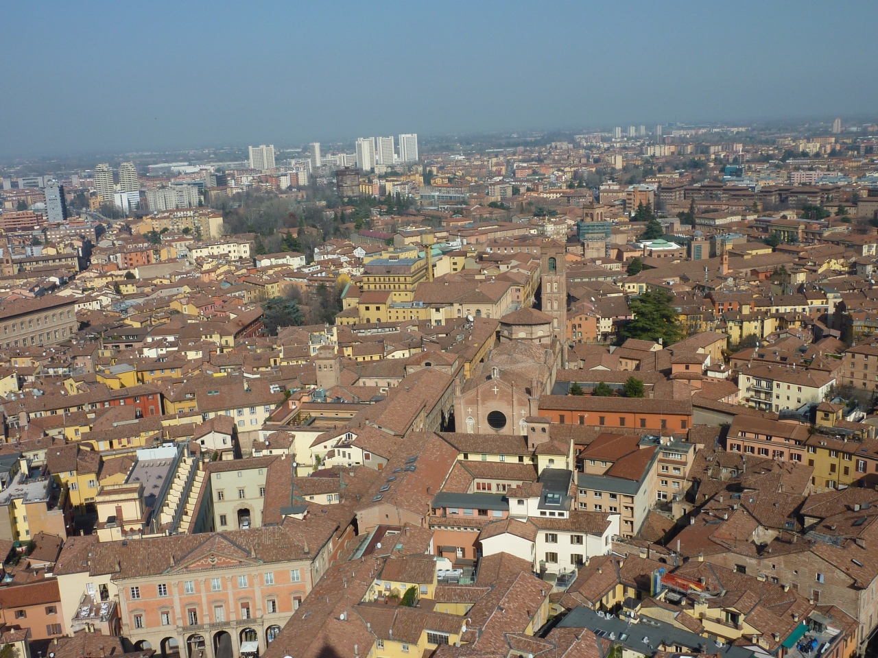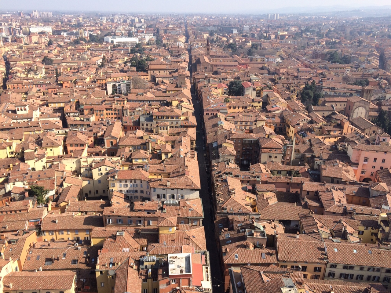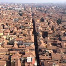 斜塔の一番上からは、ボローニャの街並みが見渡せる素晴らしい景色。