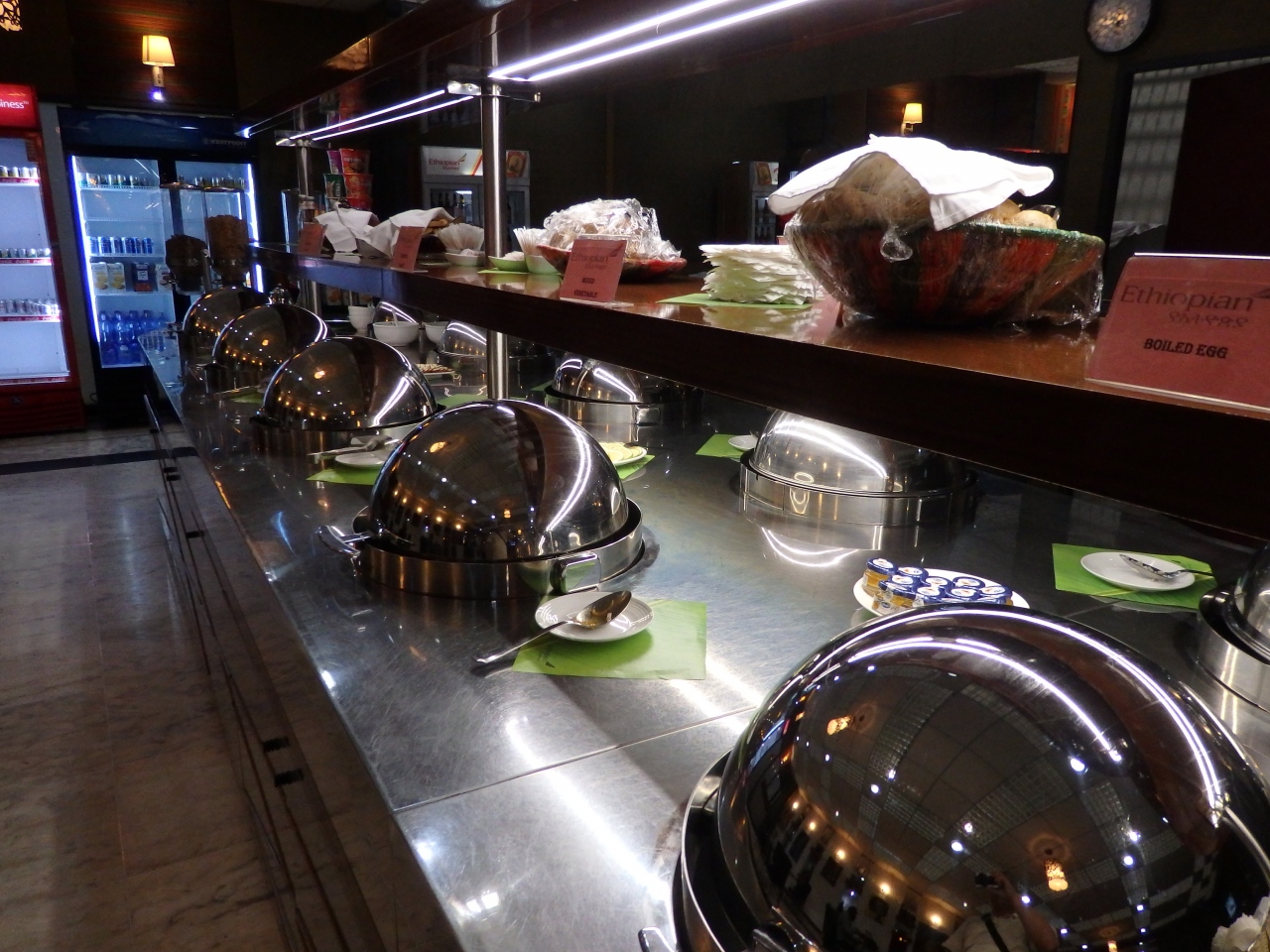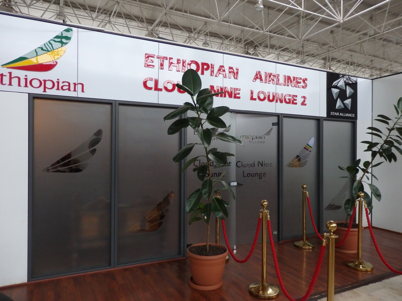 国際線ターミナルの出発コンコースは小さく、ゲート10の真ん前に、クラウド ナイン ゴールド ラウンジ があり、その真裏にクラウドナイン・ビジネスクラスラウンジがあります。ラウンジ内に、いかにもエチオピアを感じさせる一画があり、エチオピアコーヒーをエチオピア流の入れ方で試飲させてくれます。