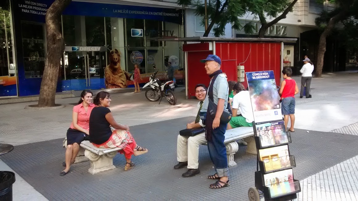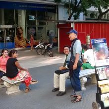 商店街が続く歩行者遊歩道のフロリダ通りとレティロ駅・バスターミナルの間に、この大きな公園みたいなサンマルティン広場があり、日夜人通りが絶えません。周辺には、アルゼンチン皮革製品を扱う商店も多いので注目。