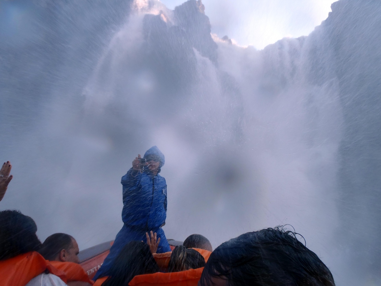そうして、滝にどんどん近づいて行くと、轟音とどろかせるイグアスの滝にボートの先端から突入! 3回位繰り返して、みんな大歓声!