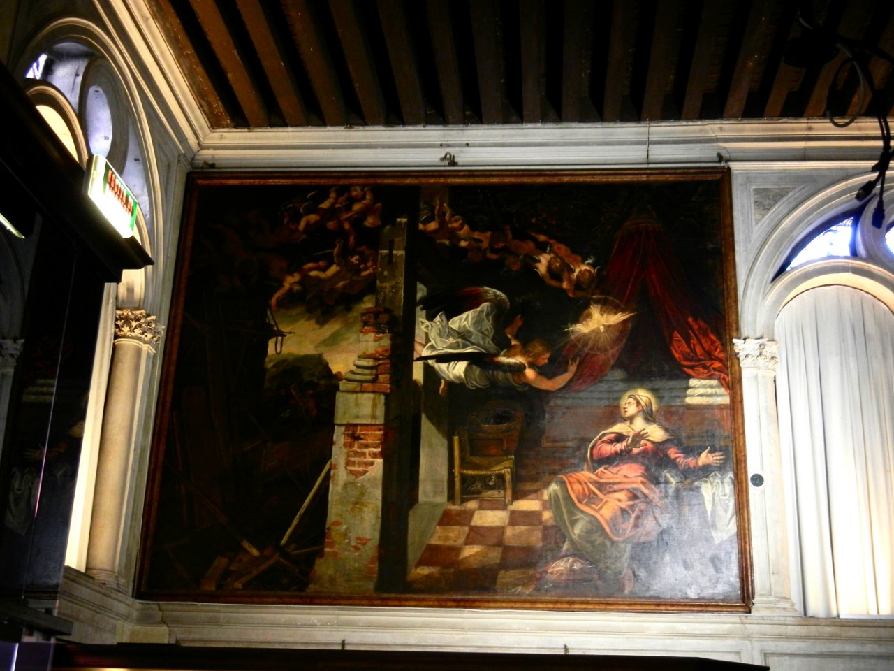 色彩が豊かなベネチア派絵画の中でも、暗い絵を描かせたらピカ一の(←注:褒めています)ティントレットの作品がずらりと展示されているサン・ロッコ同信会館。サンタ・マリア・グロリオーザ・デイ・フラーリ教会のすぐ裏にあります。ヴァポレットのサン・トーマ船着き場から5分ほど。値段は10ユーロと、ちと高め。