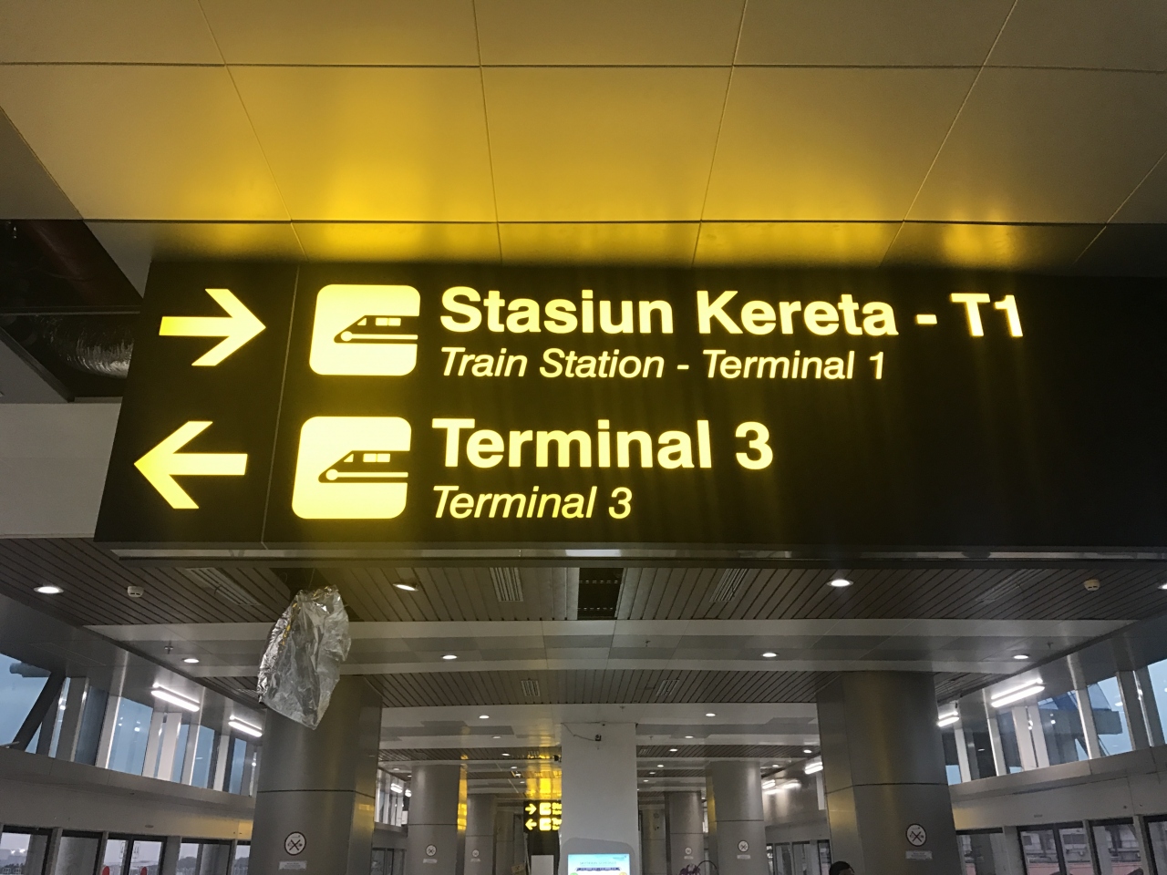 T2にはまだスカイトレインの案内が十分に周知されておらず、