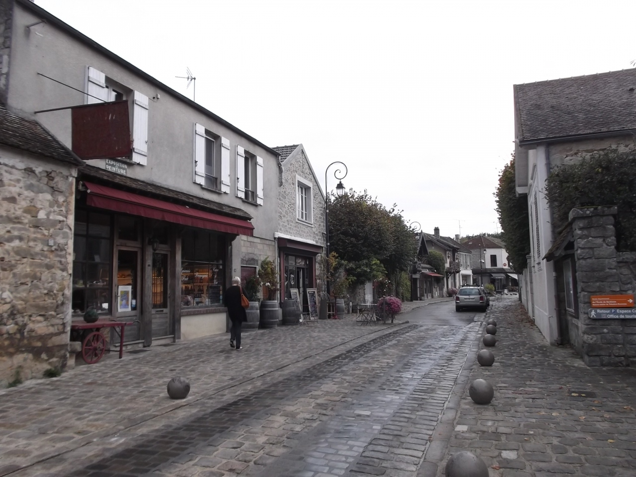 狭い村のメイン通りの両側に、雰囲気のある建物が並びます。 そのあちらこちらに、絵が飾られていました。 バルビゾン派の画家で整備されている村です。