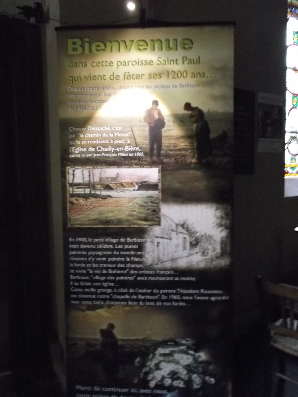 早く着いたので、駐車場の横の教会に入りました。 ここにもミレーの絵のポスターがありました。 シーズンを過ぎたので、観光客は少なかったです。