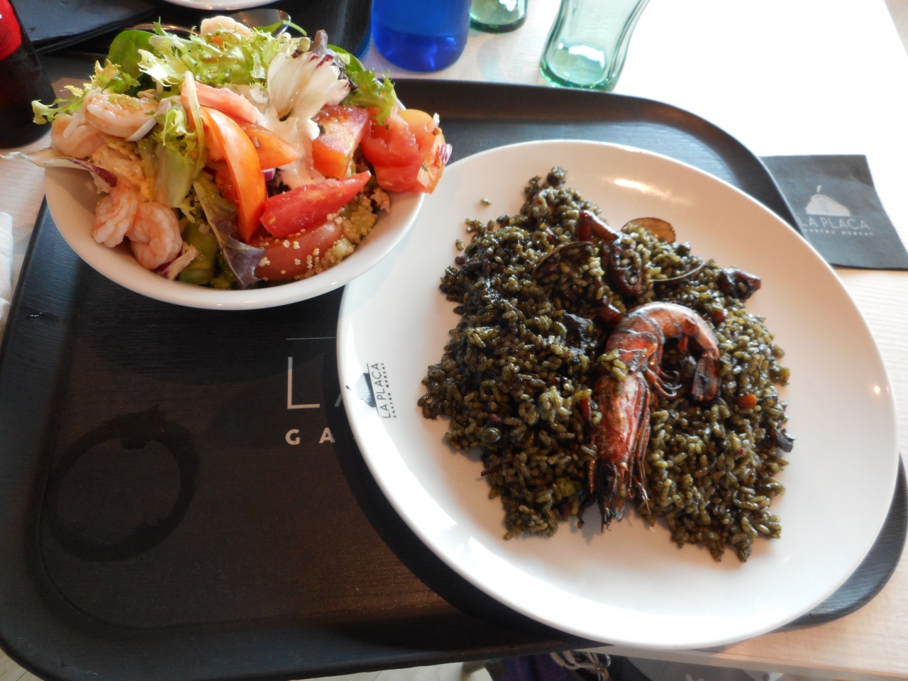 ミックスサラダは大きなサラダボールに自分で好きなだけ、いろいろな種類の野菜やパスタ、豆を入れてドレッシングをかける感じです。また、パエリアもバルセロナに来たら一度は試したい味ですが、ここならば比較的リーズナブルに堪能できます。