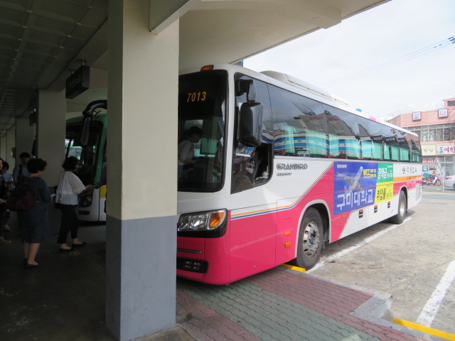慶州市街の兄山江に架かる西川橋近くの飲食店、ショップ、宿泊施設が集まる一角にあります、そばに観光案内所と慶州高速バスターミナルがあります、釜山から来た時は高速バスターミナルに着きましたが、釜山に向うときは市外バスターミナルを利用しました、こちらの方が発着本数が圧倒的に多いからです、釜山行きはこちらが便利です。