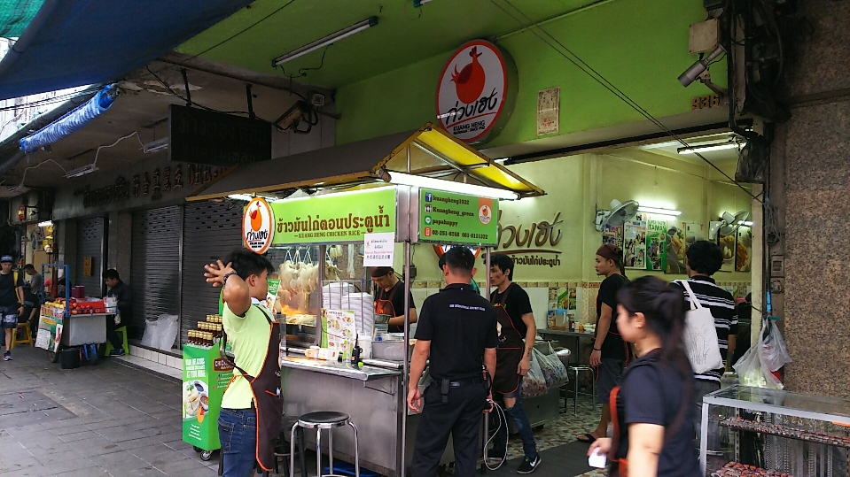 ピンクのカオマンガイの近くの緑のカオマンガイ