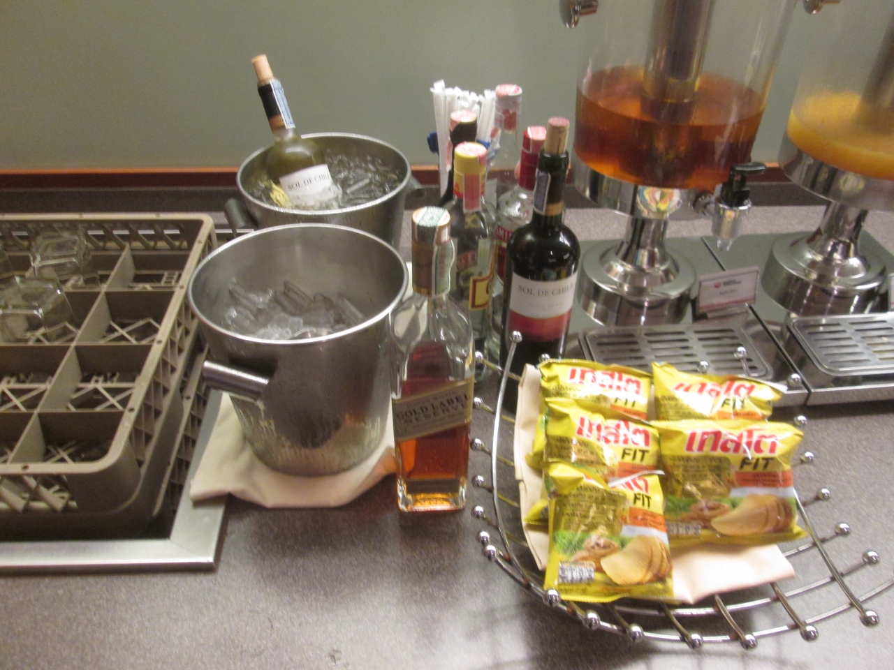JALサクララウンジのアルコールコーナーにスナック菓子が置かれていました。このタイのポテトチップスは意外とおいしく、お酒のお供に最適で食べると止まらなくなります。もともと小さい袋なのでしょうが、2つ、3つとついつい取ってしまいます。