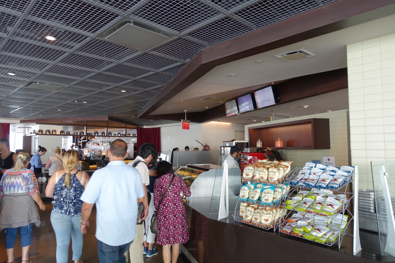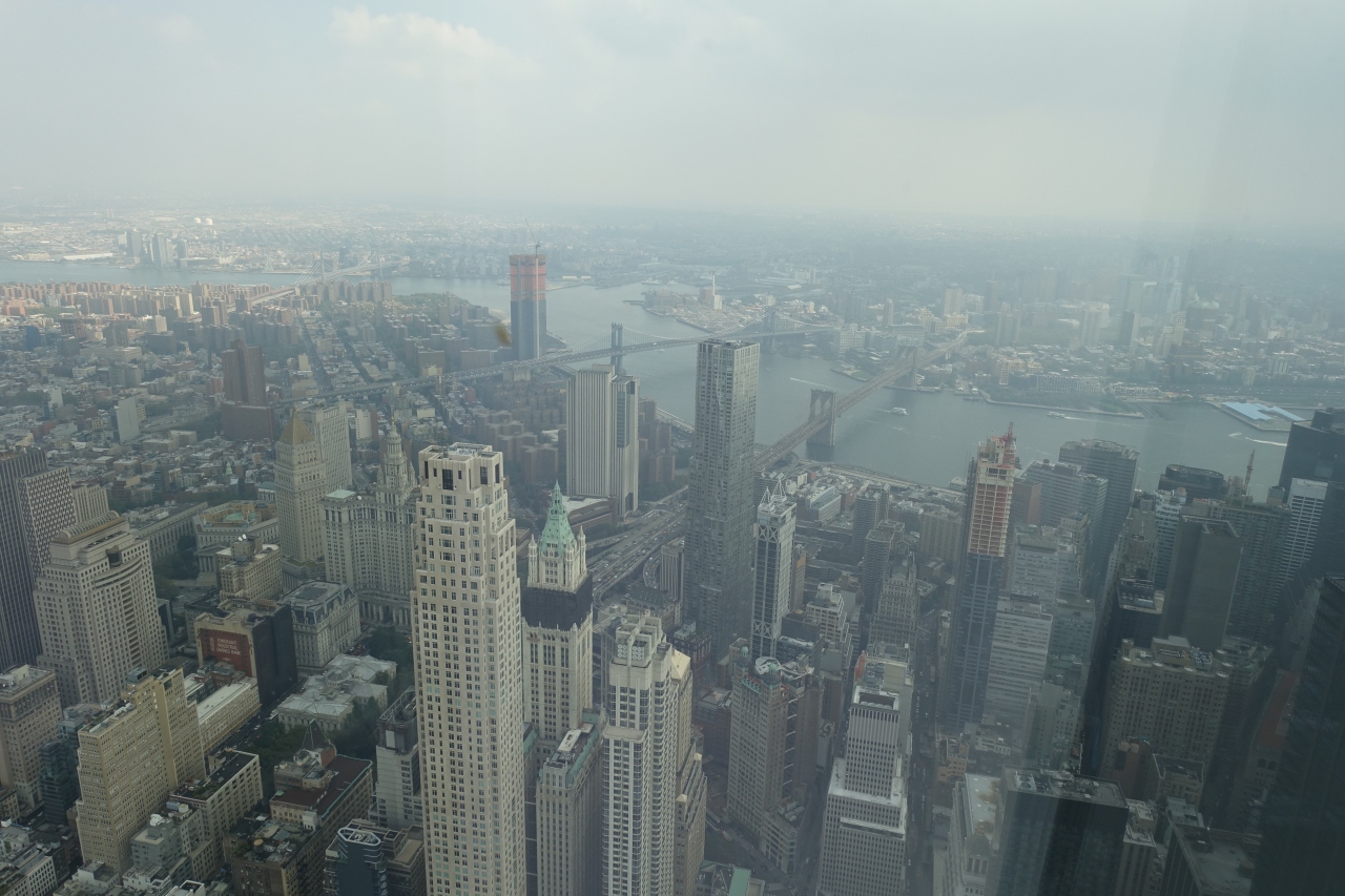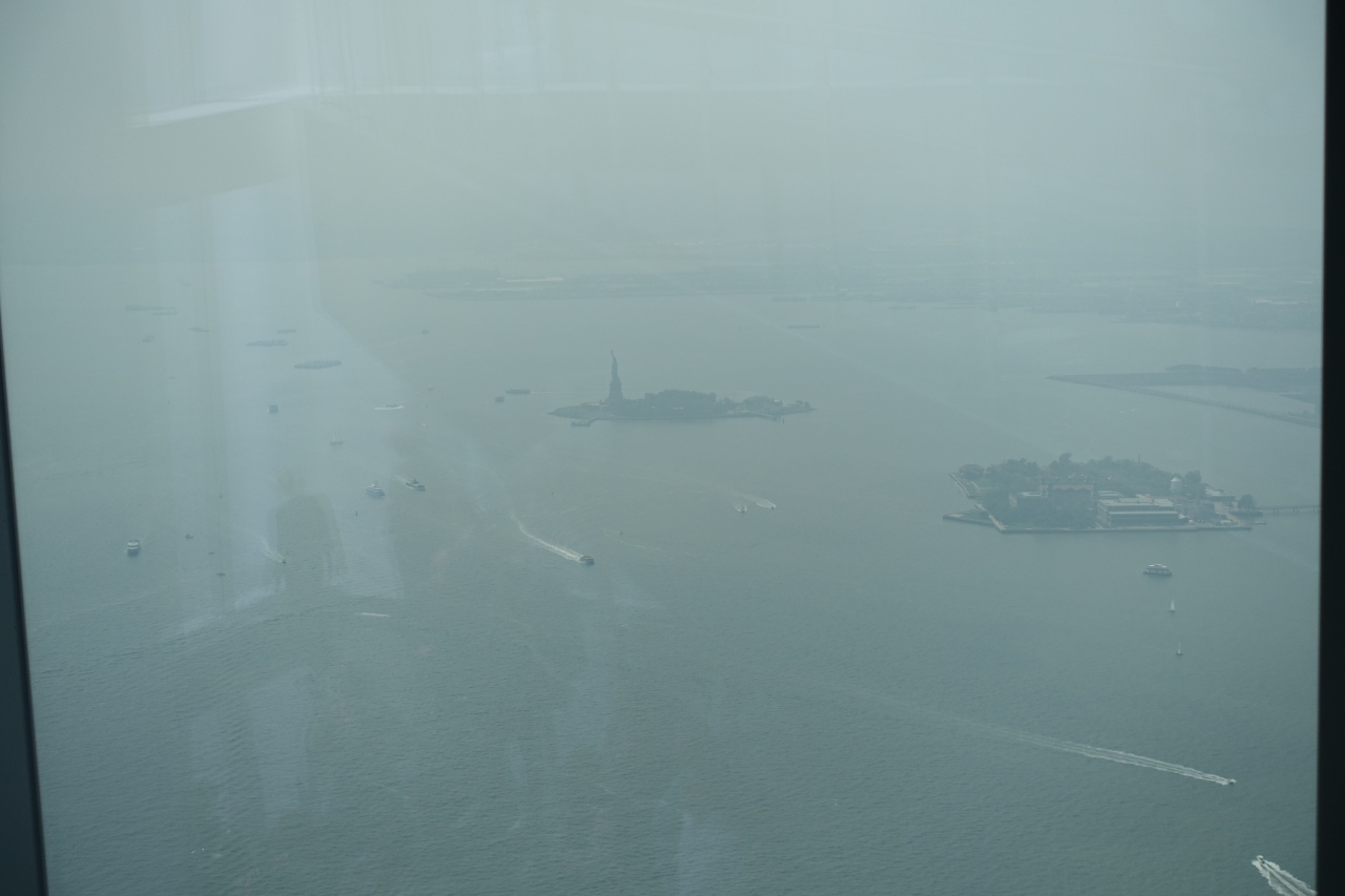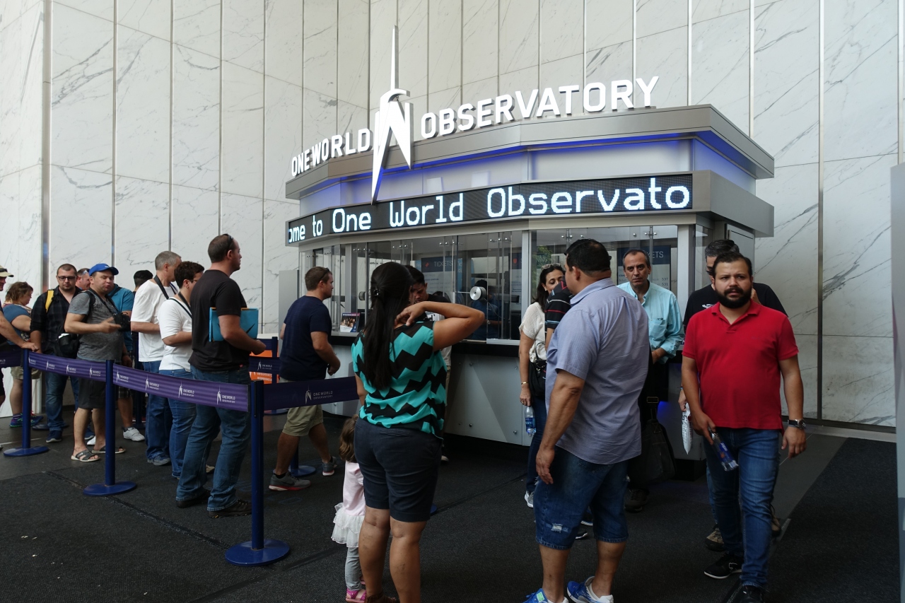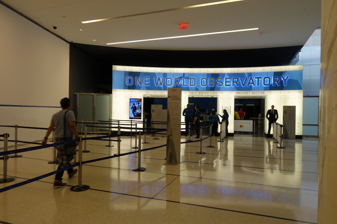 約 541 m の高さを誇るニューヨークの新シンボルのワールドトレードセンター内にあるワンワールド展望台(100 ~ 102 階)はマンハッタン全体を見渡せるのでぜひ行きたい観光スポットです。セキュリティをくぐりエレベーターから演出があり凝った内容となっています。展望台にはフードコートやレストランだけでなくお土産などが購入できるショップも充実しています。チケット売場、セキュリティ、エレベーターと混んでいますので、ネット環境があればチケット予約(クレジットカード)してスマホにバーコードを表示させるだけではいれますので、チケット売場で列に並ぶのをスキップすることができ、プライオリティチケットで入場する場合にはチケット売場、セキュリティで列に並ぶのをスキップすることができます。展望台各フロアにはきれいなトイレがあるので子供連れでも安心していけます。