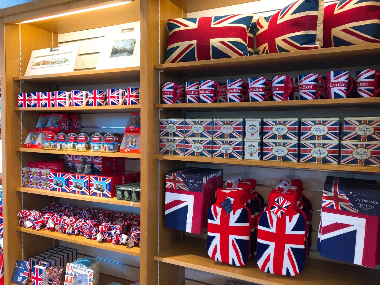 ロンドン塔の観光が終わった後はギフトショップに是非行きましょう! ユニオンジャックのグッズが所狭しと並び、ロンドンを訪れた記念になるようなものを必ず見つけられると思います(ロンドン1日観光で訪れたお店の中で、ユニオンジャックのグッズを1番たくさん見かけたのがこのギフトショップでした)