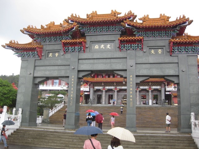 日月譚の湖畔の北部に位置し、入り口には大きく立派な廟門がある。ここを進むと前殿。階段の両端に一対の赤い獅子の石像がある。前殿は文廟で文の神孔子が、その先の中殿が武廟、武の神が祀られていて、さらにその先が後殿。宗教的なことはよくわからないが、前殿と中殿の間に龍の彫刻があり、見応えがある。