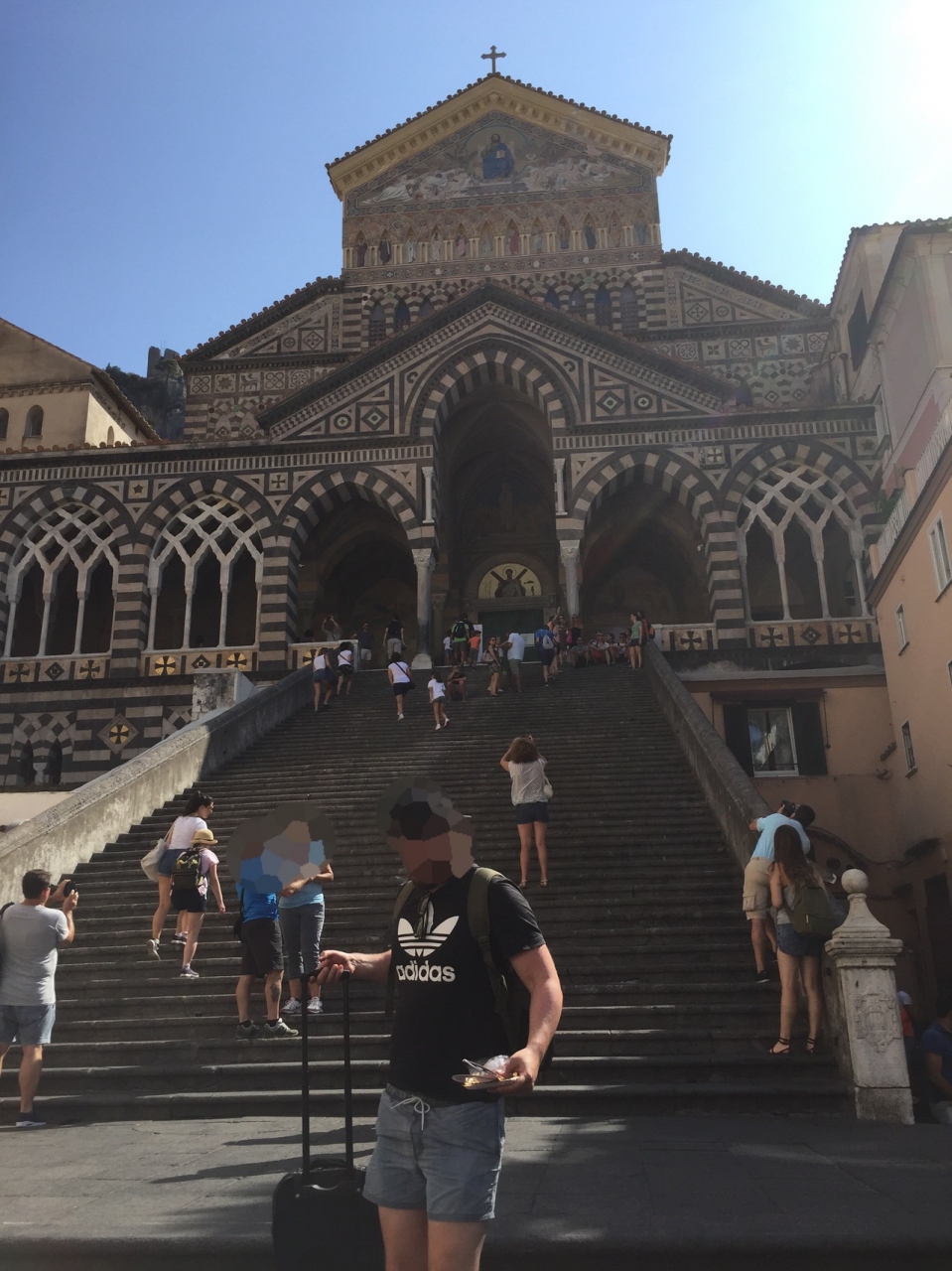 アマルフィの中心地であるドォーモ広場にあります。62段もある階段や金色に輝くファサードなど、色々と特徴があります。また、どことなくスペインのコルドバにあるメスキータに似ていると思ったら、やはりイスラム建築の様式も取り入れられているようです。それは、9世紀に建築してから、7回のも改修があったからではないかと思います。フォトジェニックな、建物です。
