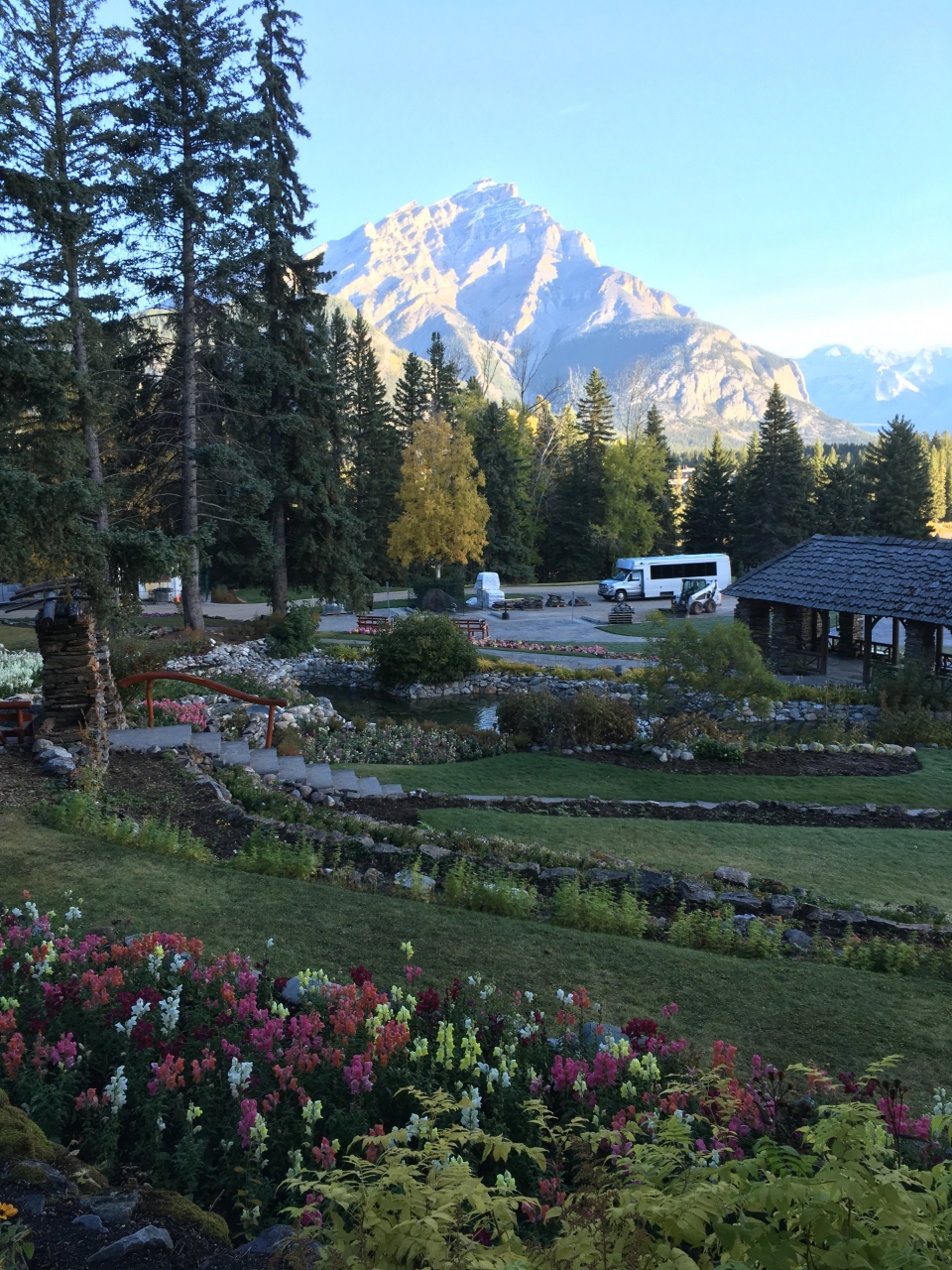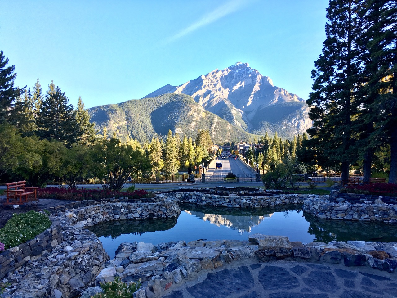 バンフの目抜き通りであるバンフ大通りの突き当たりにあるオススメの公園です。園内から見るバンフ大通りとカスケード・マウンテンは絶景で、訪れる誰もが記念撮影をしています。花壇が綺麗に整備されていました。公衆トイレもあります。