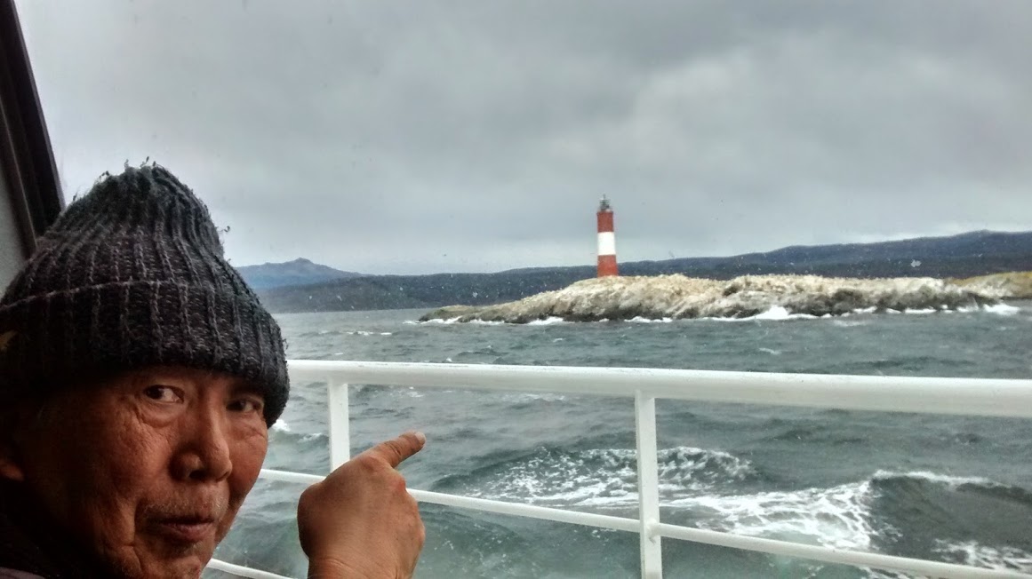 ビーグル海峡クルーズで、赤と白の目立つエクレール灯台が、岩礁の上に立っています。岩礁には、アザラシ・海鳥がたくさんいました。夏の終わりの3月初めといえ、かなり寒かったです。クルーズ船は、英語などの複数言語で説明がなされ、暖房のある内部と外部デッキがあります。