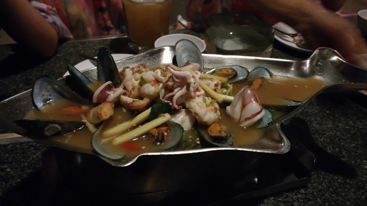 海沿いにありお店もとても広く人気があってすごく活気があります。メニューも豊富でとても美味しいですがパタヤにしては少し値段が高いかな。