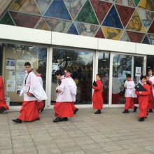 9がつ17日、この街在住のEさんがモナベイルの後、車で町の中心までつれて下さった。駐車が大変で、別のところに停めに行かれ、その間教会に。ちょうどミサ終わりの日曜日の午前中で、聖歌隊の少年少女がでてくるところだった。中にはいると、しっかりした作りの教会。最近議会で倒壊した古い教会の再建が決まったとのこと。これもそのうち壊すのかと思うと残念。