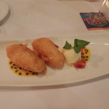 お腹がいっぱいだったので衣はちょっと重かったけど酸味の効いたパッションフルーツソースがおいしかったです。