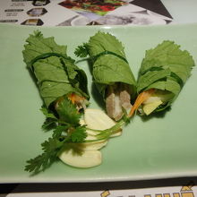 生春巻きの皮ではなく、葉で巻いてあってヘルシー♪