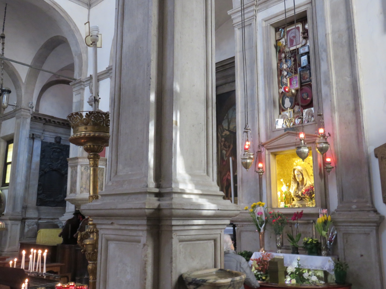 サンマルコ広場から路地を抜けてリアルト橋に向かった時に見かけた教会です。