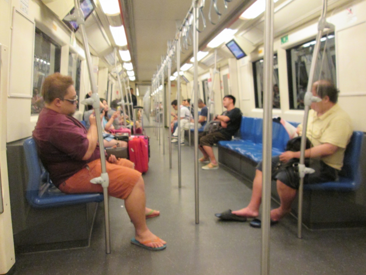 地下鉄の座席は日本と異なり堅いタイプで、1つずつ仕切りが施されているのは日本と同じでした。やはり、端から座席が埋まっていく傾向で、連結部に設定されている優先席のようなものはなく、座席の譲り合いが行われていました。