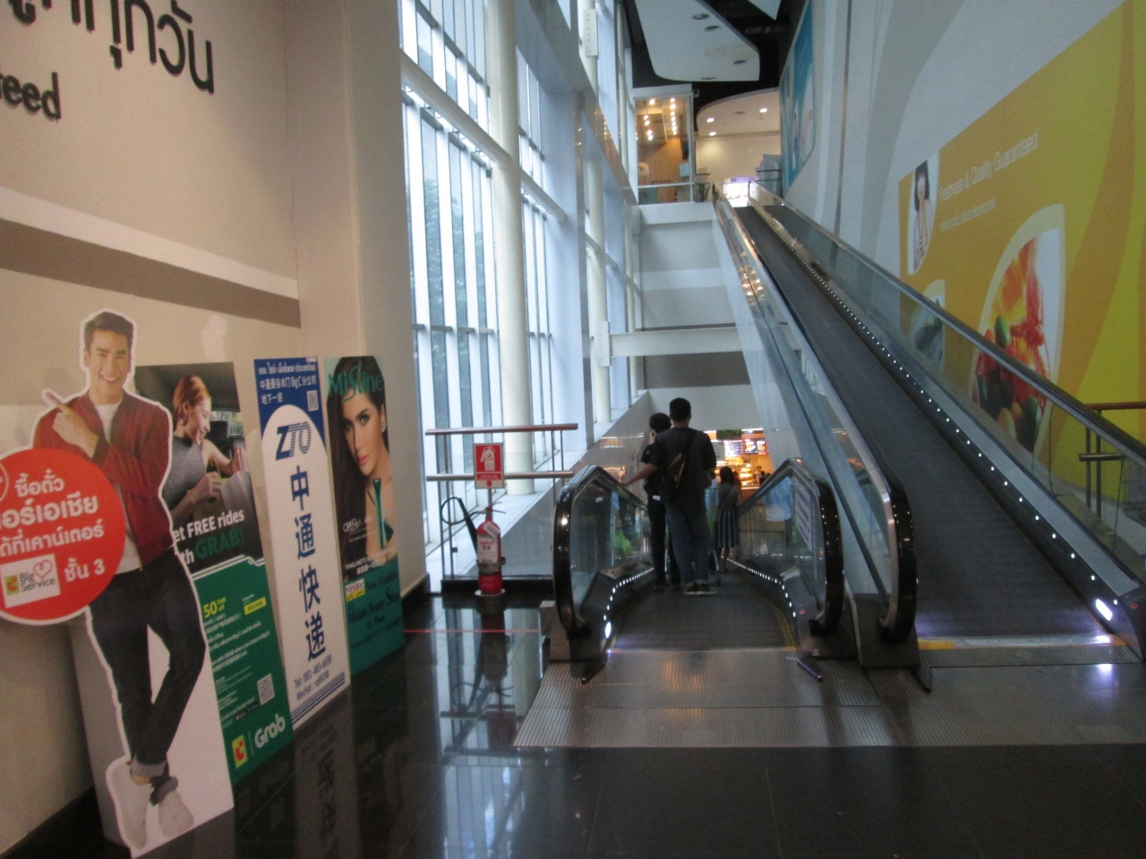 ビッグCラチャダムリ店に大きくて勾配の緩やかなエスカレーターが完備されていました。大量に購入した商品をカートに入れてフロアを行き来できるようにしたもので、2階から3階までの移動のエスカレーターは店内に2カ所ありました。
