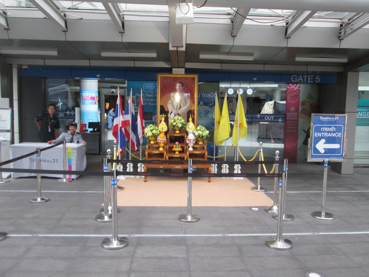 ターミナル21のエントランスに新ワチラロンコン国王の写真が飾られていました。2016年に訪問したときは、プミポン国王のご逝去に際して、街全体が自粛ムードで暗い感じでしたが、半年が過ぎて新しい国の始まりを感じる雰囲気になっていました。