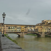 外観がよく、歴史もあり、ヴァザーリの回廊もあり、たくさんの店もあるフィレンツェの名所です。橋の上には店がたくさんあり混み合っています。アルノ川の水は濁っていましたが橋の色は古色があり美しい景色です。私に絵心があれば時間をかけて描いてみたい所です。現実にはデジカメで写真をとるしかありません。