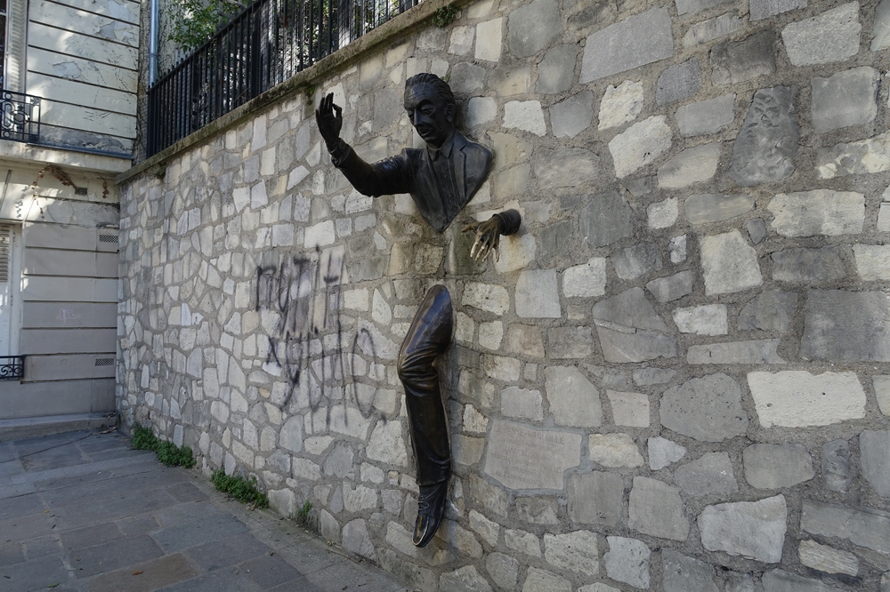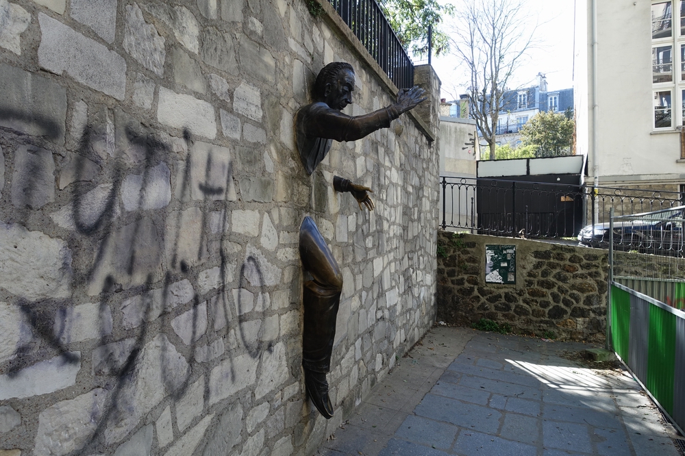 マルセル・エイメの小説「壁抜け男」にちなんだ芸術作品。こういうのが街中にあるとはいかにもモンマルトルらしいです。訪問時、この作品のある広場がちょうど工事中で、フェンスが置かれた脇を通ってどうにか近くに行けました。自分以外に見に来ている人が誰もおらずちょっと寂しい感じ。