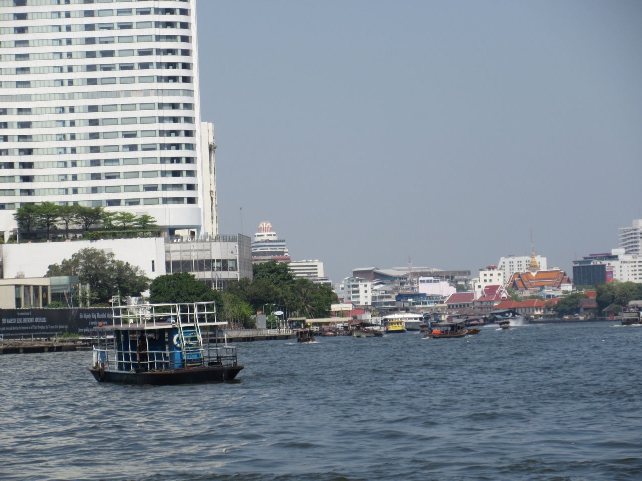 チャオプラヤー川を行き交う船に乗れば、のんびりと