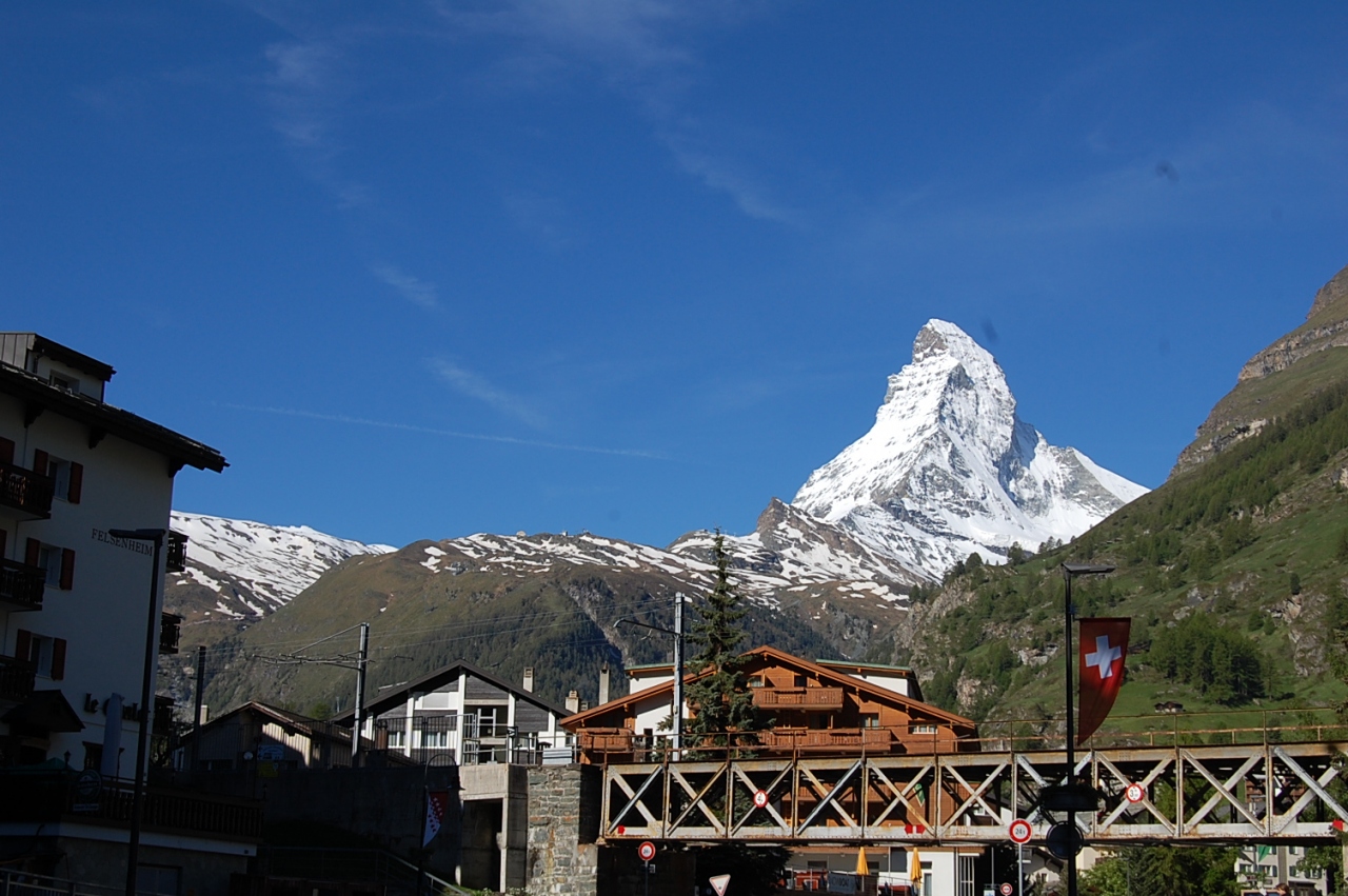 運よくツェルマットの町のあちこちからもマッターホルンを見ることが出来ました。