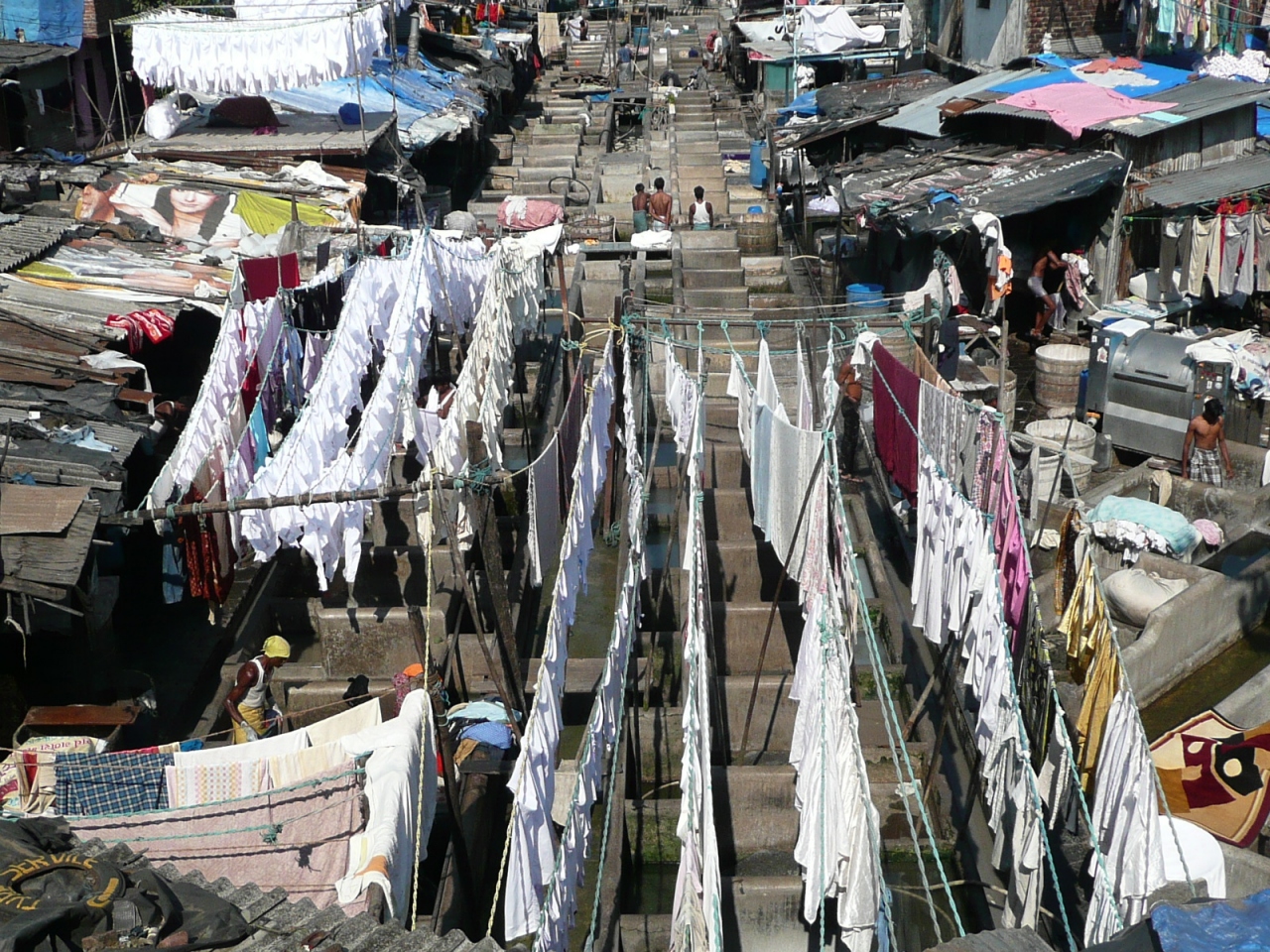 私は、35年ほど前にムンバイ(当時はボンベイでしたが)を訪れたとき、商都のど真ん中に巨大に屋外洗濯場があるのを見て、驚いた記憶があります。今回は、2度目で7年ほど前のことですが、郊外のホテルからタクシーに乗ってインド門に向かう途中で、今でもこのドービーガートが存続していることに、改めてビックリしました。